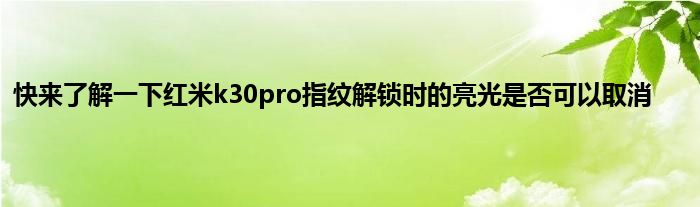 相信通过快来了解一下红米k30pro指纹解锁时的亮光是否可以取消这篇文章能帮到你,在和好朋友分享的时候,也欢迎感兴趣小伙伴们一起来探讨。