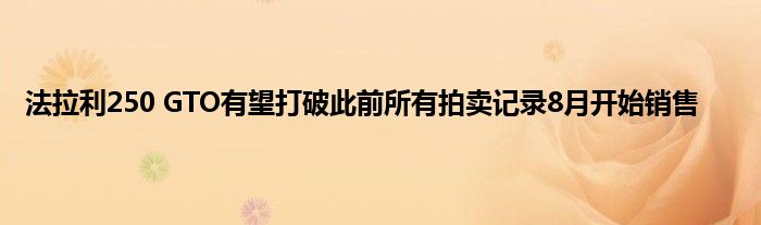 竞拍者,抓紧你的桨:第一辆法拉利250GTO将在蒙特利汽车周期间提供拍卖,由RM苏富比提供。 初步估计,这个GTO,底盘#3413GT,将获得超过4500万$,当它上升到8月份出售。