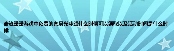 以上就是奇迹暖暖游戏中免费的套晨光咏颂什么时候可以领取以及活动时间是什么时候的推荐,相信通过奇迹暖暖游戏中免费的套晨光咏颂什么时候可以领取以及活动时间是什么时候这篇文章能帮到你,也欢迎对游戏很感兴趣小伙伴们一起来探讨。