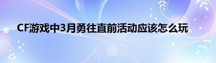 今天弟哥来聊聊一篇关于CF游戏中3月勇往直前活动应该怎么玩的文章,游戏是很多人的选择,但是游戏玩多了也会身心疲惫,现在就为大家来简单介绍下CF游戏中3月勇往直前活动应该怎么玩,希望对各位小伙伴们有所帮助。