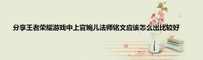 今天弟哥来聊聊一篇关于王者荣耀游戏中上官婉儿法师铭文应该怎么出比较好的文章,游戏是很多人的选择,但是游戏玩多了也会身心疲惫,现在就为大家来简单介绍下王者荣耀游戏中上官婉儿法师铭文应该怎么出比较好,希望对各位小伙伴们有所帮助。