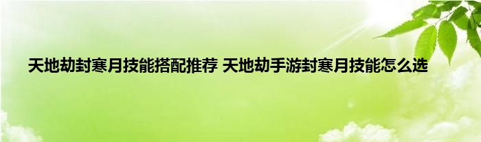天地劫封寒月技能搭配攻略