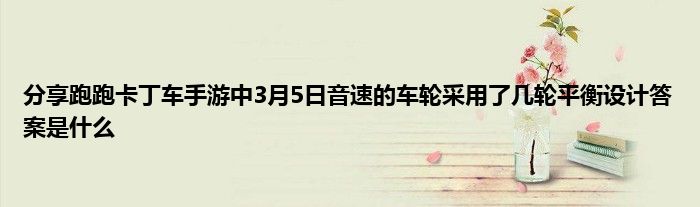 今天弟哥来聊聊一篇关于跑跑卡丁车手游中3月5日音速的车轮采用了几轮平衡设计答案是什么的文章,游戏是很多人的选择,但是游戏玩多了也会身心疲惫,现在就为大家来简单介绍下跑跑卡丁车手游中3月5日音速的车轮采用了几轮平衡设计答案是什么,希望对各位小伙伴们有所帮助。