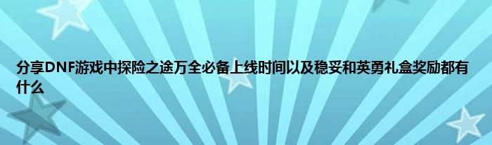 今天弟哥来聊聊一篇关于DNF游戏中探险之途万全必备上线时间以及稳妥和英勇礼盒奖励都有什么的文章,游戏是很多人的选择,但是游戏玩多了也会身心疲惫,现在就为大家来简单介绍下DNF游戏中探险之途万全必备上线时间以及稳妥和英勇礼盒奖励都有什么,希望对各位小伙伴们有所帮助。