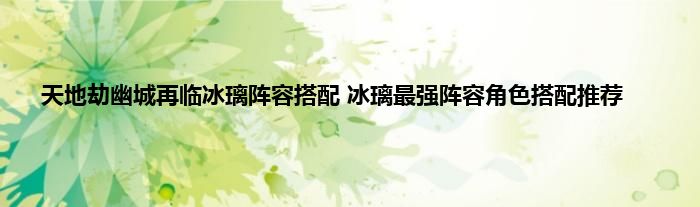 天地劫幽城再临冰璃阵容搭配攻略