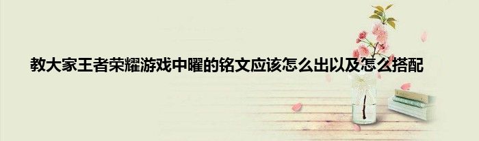 今天弟哥来聊聊一篇关于王者荣耀游戏中曜的铭文应该怎么出以及怎么搭配的文章,游戏是很多人的选择,但是游戏玩多了也会身心疲惫,现在就为大家来简单介绍下王者荣耀游戏中曜的铭文应该怎么出以及怎么搭配,希望对各位小伙伴们有所帮助。