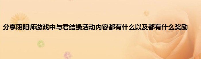 今天弟哥来聊聊一篇关于阴阳师游戏中与君结缘活动内容都有什么以及都有什么奖励的文章,游戏是很多人的选择,但是游戏玩多了也会身心疲惫,现在就为大家来简单介绍下阴阳师游戏中与君结缘活动内容都有什么以及都有什么奖励,希望对各位小伙伴们有所帮助。