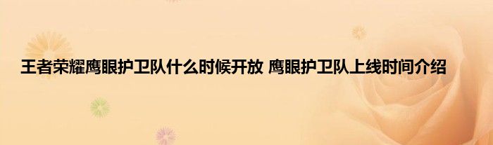 王者荣耀游戏中马航就要开放鹰眼护卫队活动了,鹰眼护卫队目前已经在主页上面已有显示, 但是玩家们还是点不进去的,很多玩家都已经等待的饥渴难耐了,那么王者荣耀鹰眼护卫队什么时候开放?蚕豆小编为您带来鹰眼护卫队开放时间介绍。