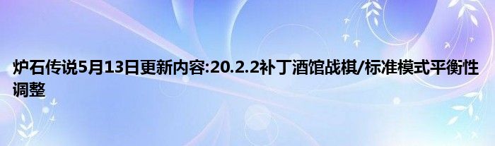 炉石传说5月13日迎来20.2.2版本的更新,标准模式、酒馆战棋等不少卡牌平衡性调整。炉石传说5月13日更新内容都有哪些呢?这就来了解下吧。