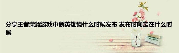 今天弟哥来聊聊一篇关于王者荣耀游戏中新英雄镜什么时候发布 发布时间定在什么时候的文章,游戏是很多人的选择,但是游戏玩多了也会身心疲惫,现在就为大家来简单介绍下王者荣耀游戏中新英雄镜什么时候发布 发布时间定在什么时候,希望对各位小伙伴们有所帮助。