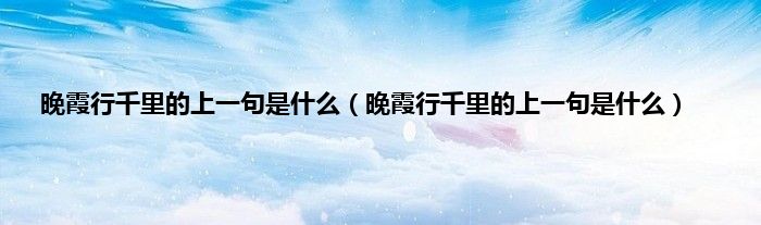 大家好,小科来为大家解答以上问题。晚霞行千里的上一句是什么,晚霞行千里的上一句是什么很多人还不知道,现在让我们一起来看看吧!