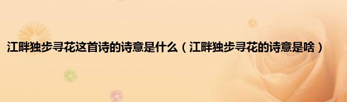 大家好,小科来为大家解答以上问题。江畔独步寻花这首诗的诗意是什么,江畔独步寻花的诗意是啥很多人还不知道,现在让我们一起来看看吧!