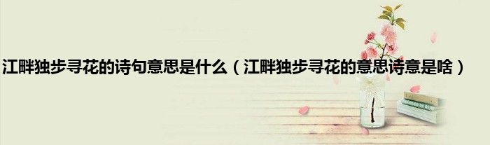 大家好,小科来为大家解答以上问题。江畔独步寻花的诗句意思是什么,江畔独步寻花的意思诗意是啥很多人还不知道,现在让我们一起来看看吧!