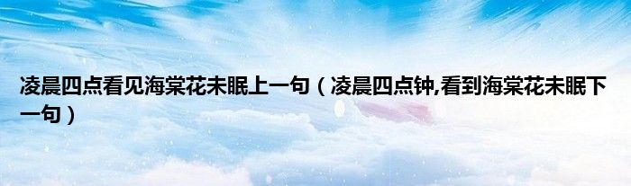 大家好,小科来为大家解答以上问题。凌晨四点看见海棠花未眠上一句,凌晨四点钟,看到海棠花未眠下一句很多人还不知道,现在让我们一起来看看吧!