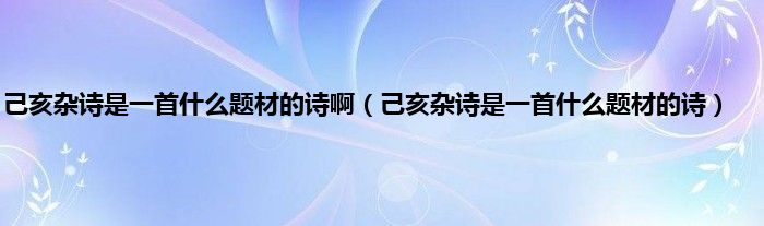 大家好,小科来为大家解答以上问题。己亥杂诗是一首什么题材的诗啊,己亥杂诗是一首什么题材的诗很多人还不知道,现在让我们一起来看看吧!