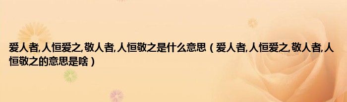 大家好,小科来为大家解答以上问题。爱人者,人恒爱之,敬人者,人恒敬之是什么意思,爱人者,人恒爱之,敬人者,人恒敬之的意思是啥很多人还不知道,现在让我们一起来看看吧!