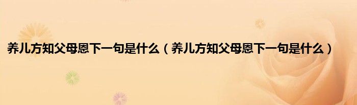 大家好,小科来为大家解答以上问题。养儿方知父母恩下一句是什么,养儿方知父母恩下一句是什么很多人还不知道,现在让我们一起来看看吧!