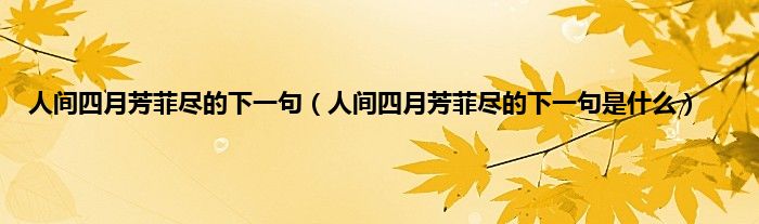 大家好,小科来为大家解答以上问题。人间四月芳菲尽的下一句,人间四月芳菲尽的下一句是什么很多人还不知道,现在让我们一起来看看吧!