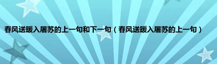 大家好,小科来为大家解答以上问题。春风送暖入屠苏的上一句和下一句,春风送暖入屠苏的上一句很多人还不知道,现在让我们一起来看看吧!