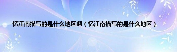 大家好,小科来为大家解答以上问题。忆江南描写的是什么地区啊,忆江南描写的是什么地区很多人还不知道,现在让我们一起来看看吧!