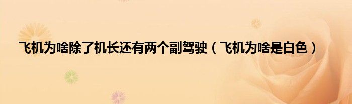 大家好,小科来为大家解答以上问题。飞机为啥除了机长还有两个副驾驶,飞机为啥是白色很多人还不知道,现在让我们一起来看看吧!