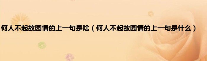 大家好,小科来为大家解答以上问题。何人不起故园情的上一句是啥,何人不起故园情的上一句是什么很多人还不知道,现在让我们一起来看看吧!