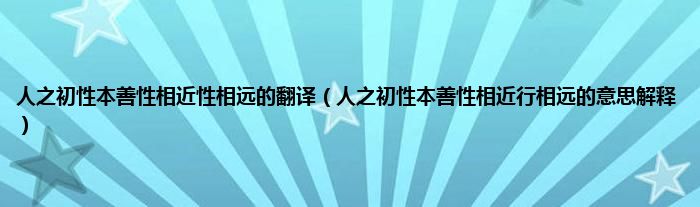 大家好,小科来为大家解答以上问题。人之初性本善性相近性相远的翻译,人之初性本善性相近行相远的意思解释很多人还不知道,现在让我们一起来看看吧!