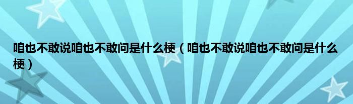 大家好,小科来为大家解答以上问题。咱也不敢说咱也不敢问是什么梗,咱也不敢说咱也不敢问是什么梗很多人还不知道,现在让我们一起来看看吧!