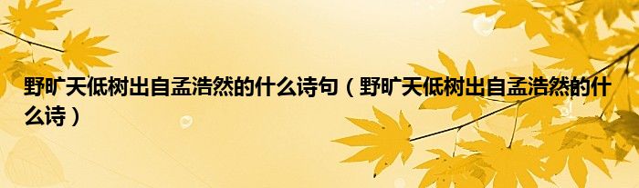 大家好,小科来为大家解答以上问题。野旷天低树出自孟浩然的什么诗句,野旷天低树出自孟浩然的什么诗很多人还不知道,现在让我们一起来看看吧!