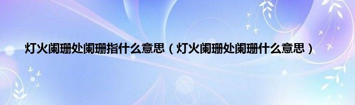 大家好,小科来为大家解答以上问题。灯火阑珊处阑珊指什么意思,灯火阑珊处阑珊什么意思很多人还不知道,现在让我们一起来看看吧!