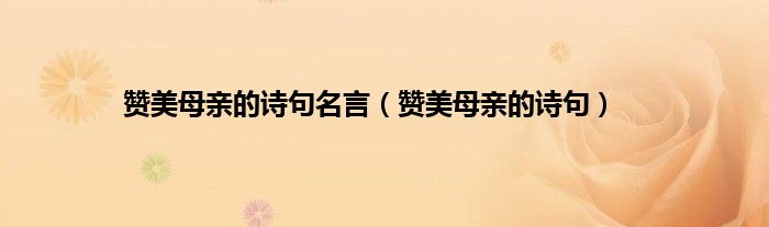 赞美母亲的诗句名言(赞美母亲的诗句)