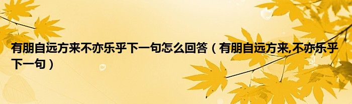 大家好,小科来为大家解答以上问题。有朋自远方来不亦乐乎下一句怎么回答,有朋自远方来,不亦乐乎下一句很多人还不知道,现在让我们一起来看看吧!