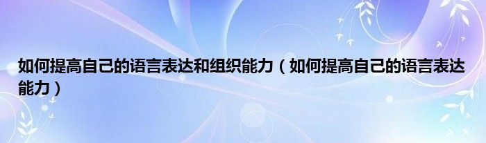 大家好,小科来为大家解答以上问题。如何提高自己的语言表达和组织能力,如何提高自己的语言表达能力很多人还不知道,现在让我们一起来看看吧!