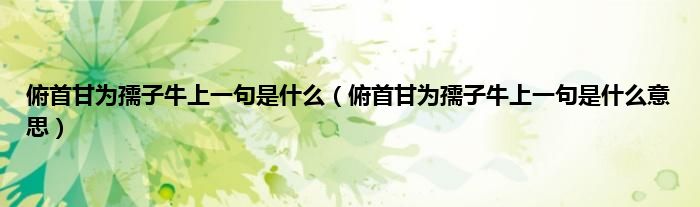 大家好,小科来为大家解答以上问题。俯首甘为孺子牛上一句是什么,俯首甘为孺子牛上一句是什么意思很多人还不知道,现在让我们一起来看看吧!