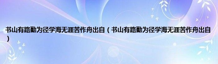 大家好,小科来为大家解答以上问题。书山有路勤为径学海无涯苦作舟出自,书山有路勤为径学海无涯苦作舟出自很多人还不知道,现在让我们一起来看看吧!
