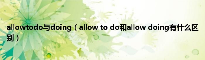 大家好,小科来为大家解答以上问题。allowtodo与doing,allow to do和allow doing有什么区别很多人还不知道,现在让我们一起来看看吧!