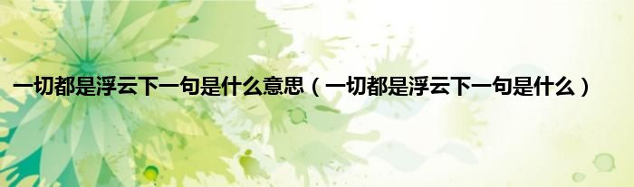 大家好,小科来为大家解答以上问题。一切都是浮云下一句是什么意思,一切都是浮云下一句是什么很多人还不知道,现在让我们一起来看看吧!