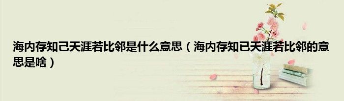 1、 海内存知已与天为邻的意思是:天下有知音,即使相距遥远,也是近邻。《送杜少府之任蜀州/送杜少府之任蜀川》唐代王波所作