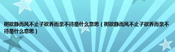 大家好,小科来为大家解答以上问题。树欲静而风不止子欲养而亲不待是什么意思,树欲静而风不止子欲养而亲不待是什么意思很多人还不知道,现在让我们一起来看看吧!