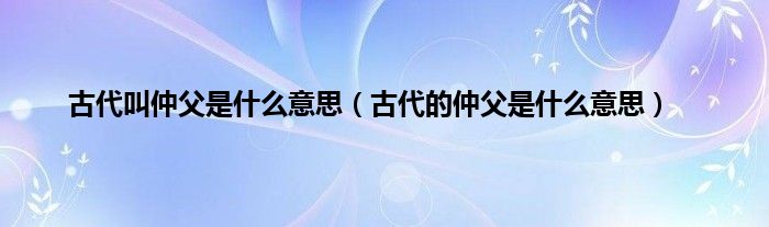 大家好,小科来为大家解答以上问题。古代叫仲父是什么意思,古代的仲父是什么意思很多人还不知道,现在让我们一起来看看吧!