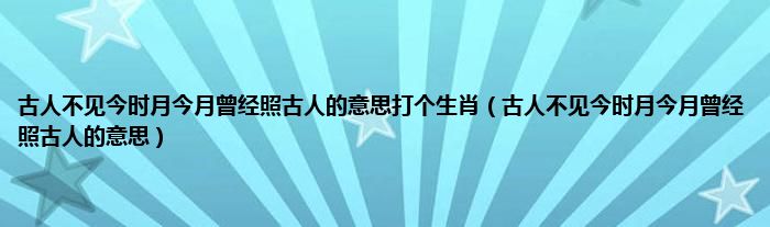 古人不见今时月今月曾经照古人的意思打个生肖(古人不见今时月今月曾经照古人的意思)