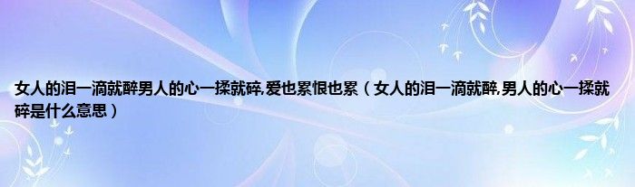 大家好,小科来为大家解答以上问题。女人的泪一滴就醉男人的心一揉就碎,爱也累恨也累,女人的泪一滴就醉,男人的心一揉就碎是什么意思很多人还不知道,现在让我们一起来看看吧!