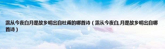 大家好,小科来为大家解答以上问题。露从今夜白月是故乡明出自杜甫的哪首诗,露从今夜白,月是故乡明出自哪首诗很多人还不知道,现在让我们一起来看看吧!