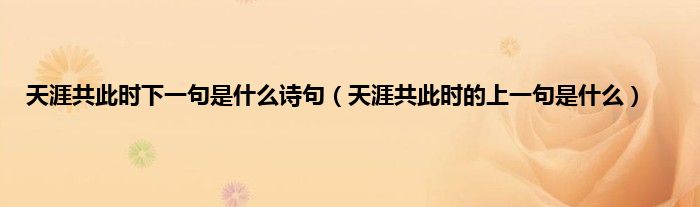 大家好,小科来为大家解答以上问题。天涯共此时下一句是什么诗句,天涯共此时的上一句是什么很多人还不知道,现在让我们一起来看看吧!