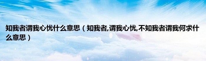 1、 “知我者,谓我心忧;不,知我者,我要什么?意思是:了解我的人知道我的忧虑和烦恼;不懂我的人问我心在找什么?在这里,“知道”的意思是:知道;烦恼”的意思是:担忧和悲伤。