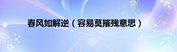 大家好,小科来为大家解答以上问题。春风如解逆,容易莫摧残意思很多人还不知道,现在让我们一起来看看吧!