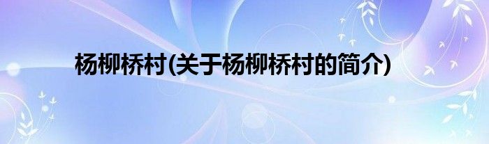 大家好,杨柳桥村,关于杨柳桥村的简介很多人还不知道,现在让我们一起来看看吧!