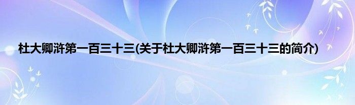 杜大卿浒第一百三十三(关于杜大卿浒第一百三十三的简介)