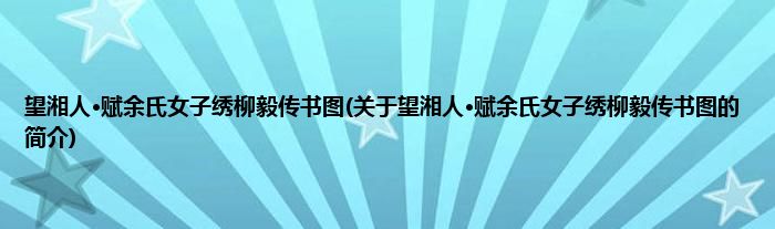 本文关于望湘人·赋余氏女子绣柳毅传书图的简介就讲解完毕,希望对大家有所帮助。