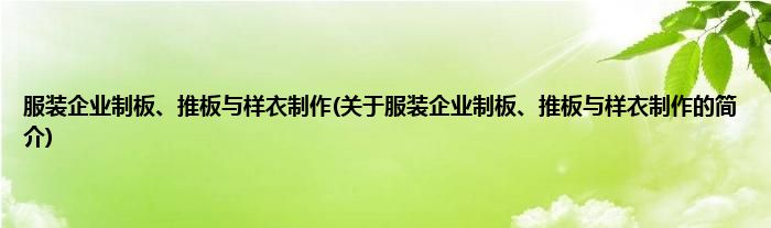 服装企业制板、推板与样衣制作(关于服装企业制板、推板与样衣制作的简介)